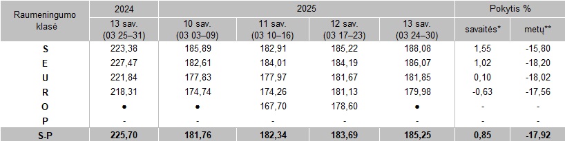 ** lyginant 2025 m. 13 savaitę su 2024 m. 13 savaite