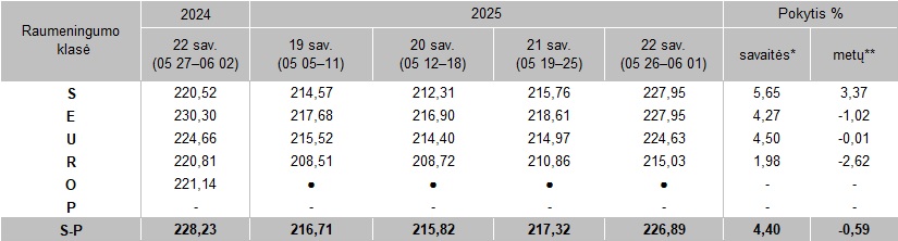 * lyginant 2025 m. 22 savaitę su 2025 m. 21 savaite