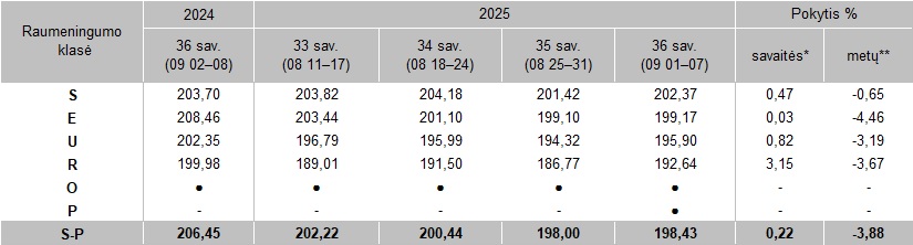 * lyginant 2025 m. 36 savaitę su 2025 m. 35 savaite