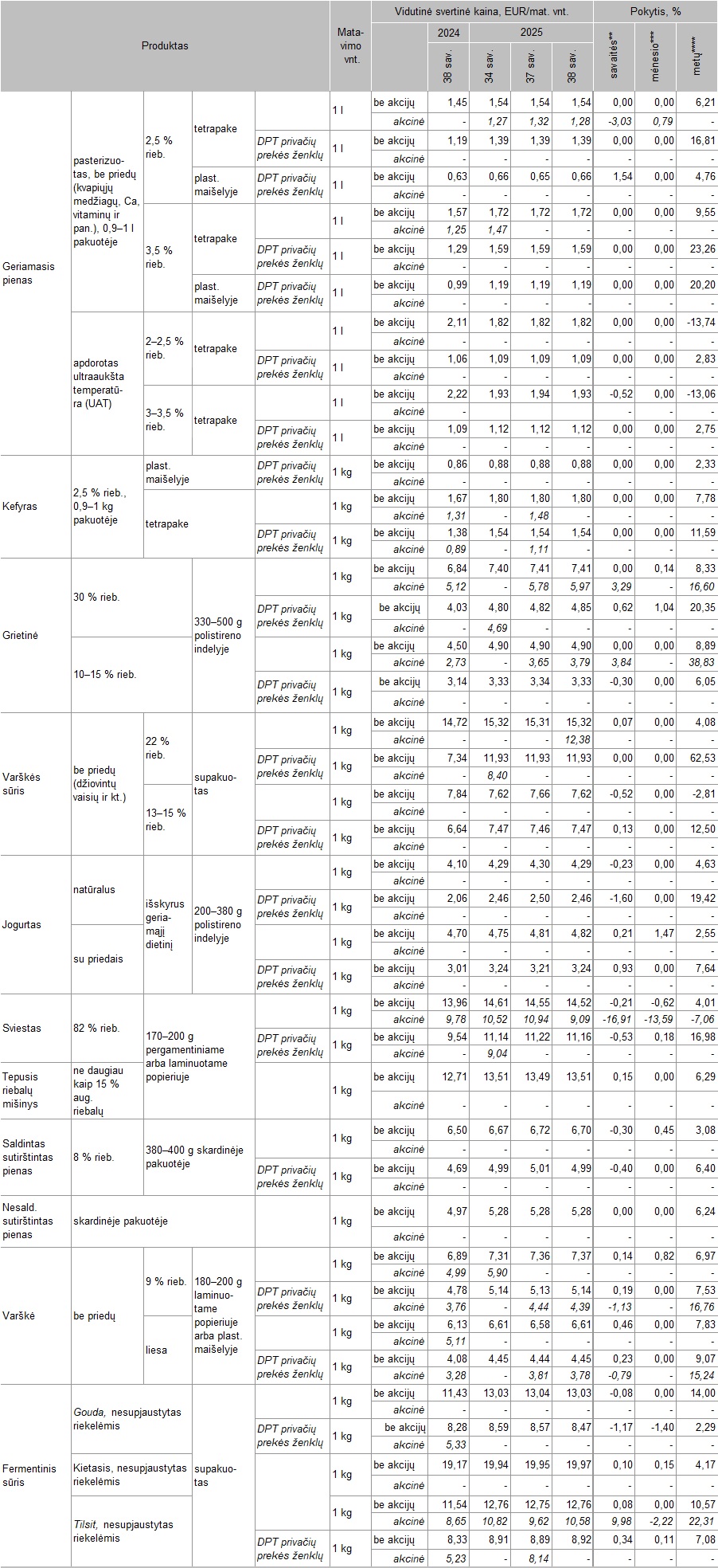 * kainos registruojamos Vilniaus, Kauno, Klaipėdos, Panevėžio ir Marijampolės miestų UAB „Lidl Lietuva“, UAB „Maxima LT“, UAB „Norfos mažmena“, UAB „IKI Lietuva“ ir UAB „Rimi Lietuva“ prekybos tinklų parduotuvėse