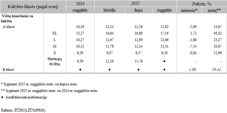 Kiaušinių pardavimo vidutinės didmeninės kainos Lietuvos įmonėse 2025 m. birželio–rugpjūčio mėn. EUR/100 vnt. (be PVM)