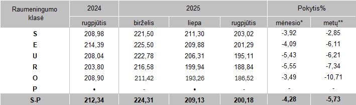 * lyginant 2025 m. rugpjūčio mėn. su 2025 m. liepos mėn.