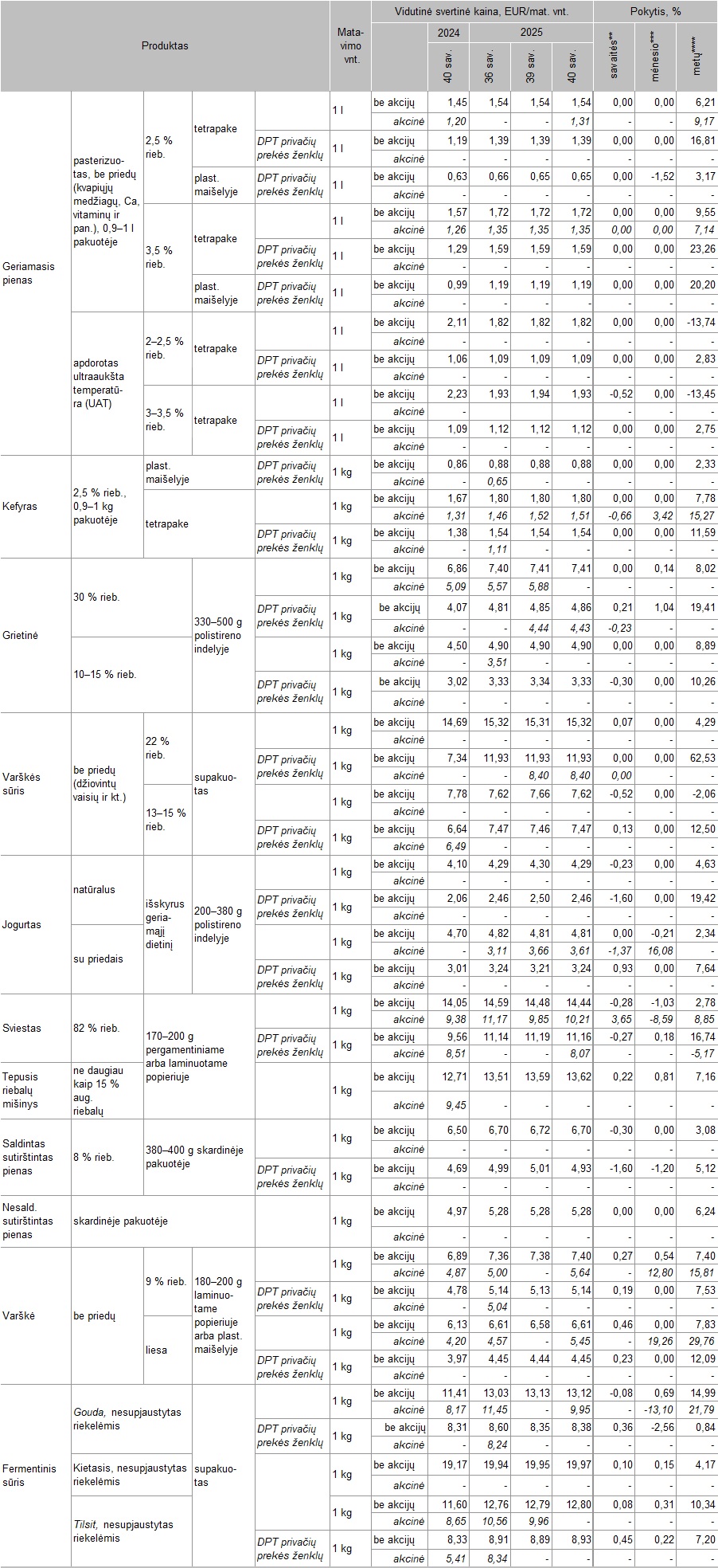 **** lyginant 2025 m. 40 savaitę su 2024 m. 40 savaite