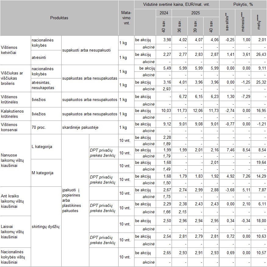 **** lyginant 2025 m. 40 savaitę su 2024 m. 40 savaite