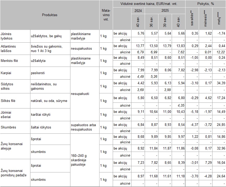 **** lyginant 2025 m. 40 savaitę su 2024 m. 40 savaite