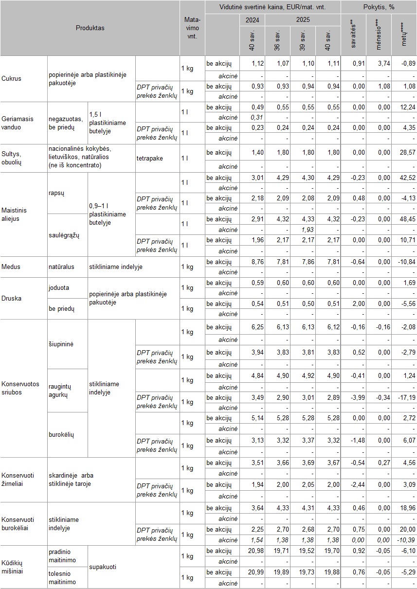 * kainos registruojamos Vilniaus, Kauno, Klaipėdos, Panevėžio ir Marijampolės miestų UAB „Lidl Lietuva“, UAB „Maxima LT“, UAB „Norfos mažmena“, UAB „IKI Lietuva“ ir UAB „Rimi Lietuva“ prekybos tinklų parduotuvėse