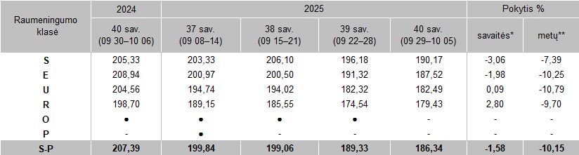 * lyginant 2025 m. 40 savaitę su 2025 m. 39 savaite