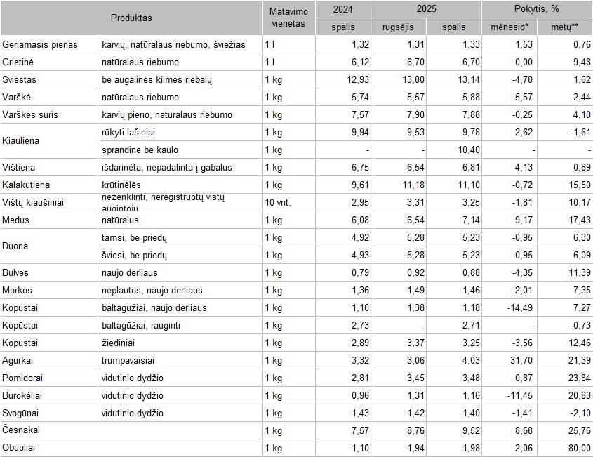 ** lyginant 2025 m. spalio mėn. su 2024 m. spalio mėn.