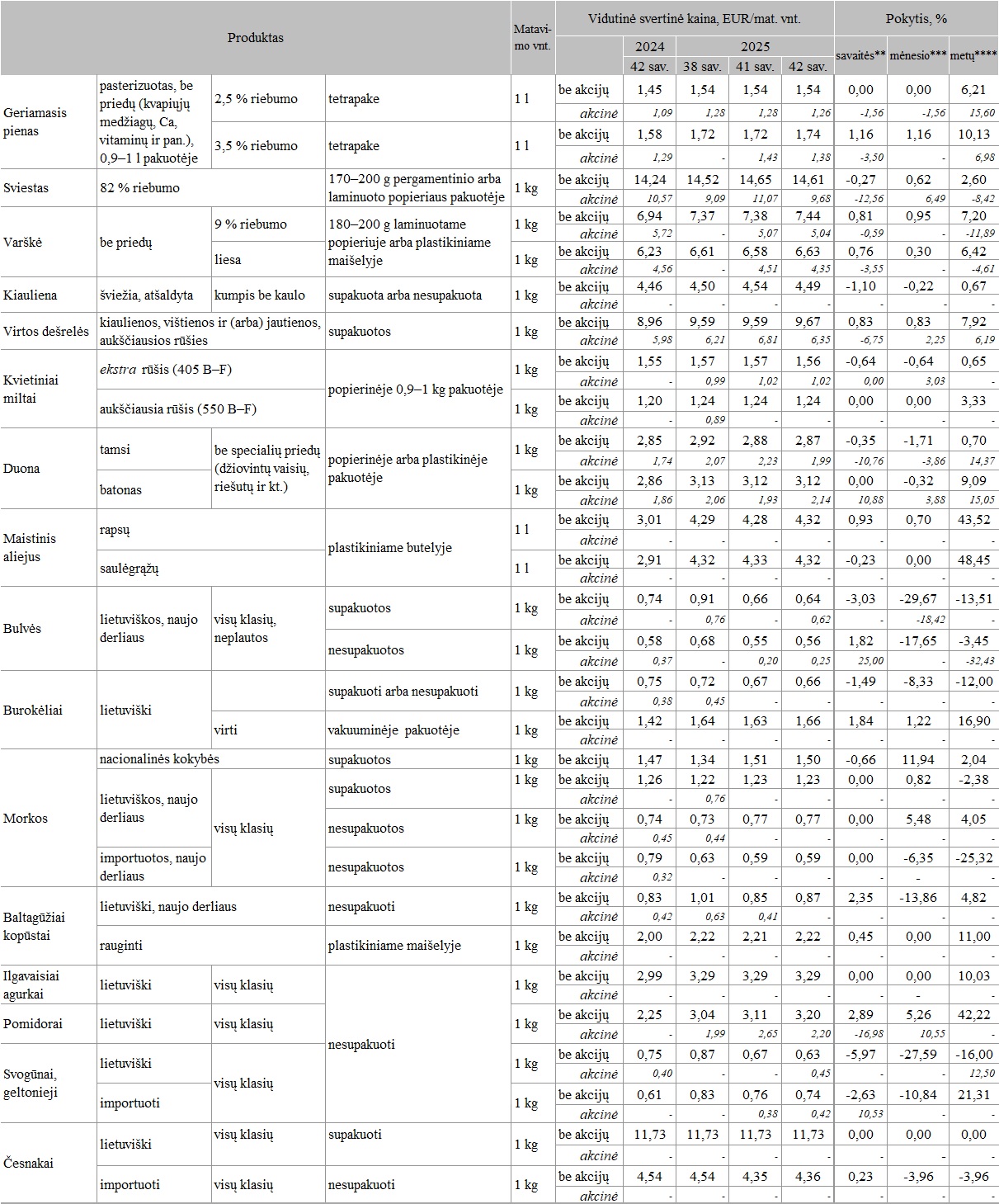 **** lyginant 2025 m. 42 savaitę su 2024 m. 42 savaite