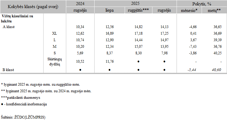 Kiaušinių pardavimo vidutinės didmeninės kainos Lietuvos įmonėse 2025 m. liepos–rugsėjo mėn. EUR/100 vnt. (be PVM)