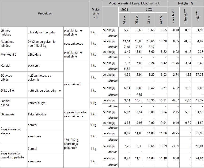 **** lyginant 2025 m. 44 savaitę su 2024 m. 44 savaite