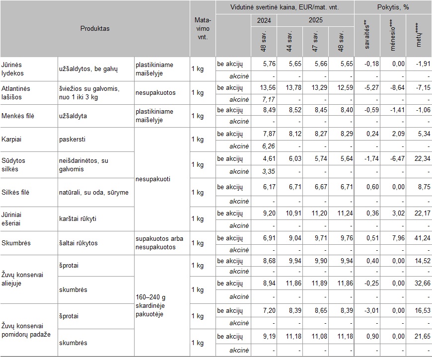 **** lyginant 2025 m. 48 savaitę su 2024 m. 48 savaite