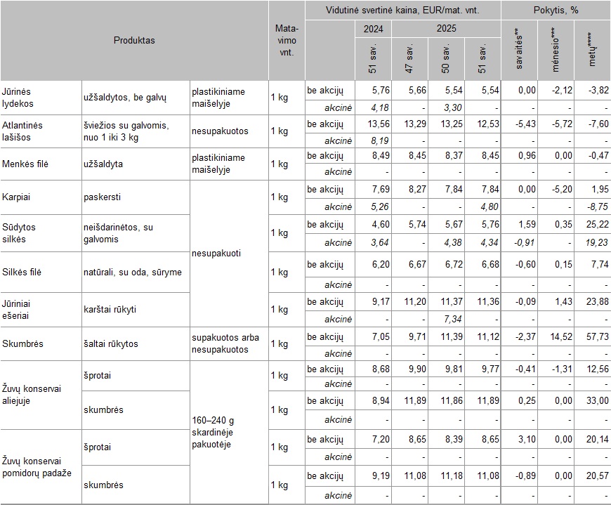 **** lyginant 2025 m. 51 savaitę su 2024 m. 51 savaite
