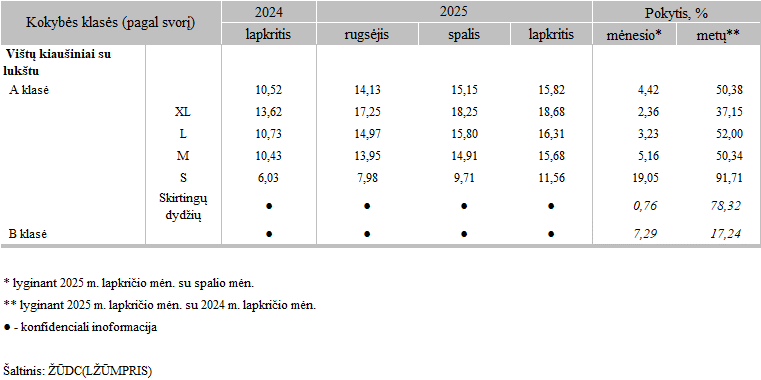 Kiaušinių pardavimo vidutinės didmeninės kainos Lietuvos įmonėse 2025 m. rugsėjo–lapkričio mėn. EUR/100 vnt. (be PVM)