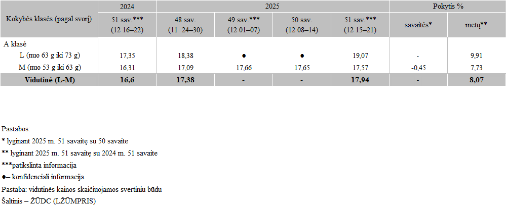 Ant kraiko laikomų vištų kiaušinių pardavimo vidutinės didmeninės kainos Lietuvos įmonėse 2025 m. 48–51 sav. EUR/100 vnt. (be PVM)