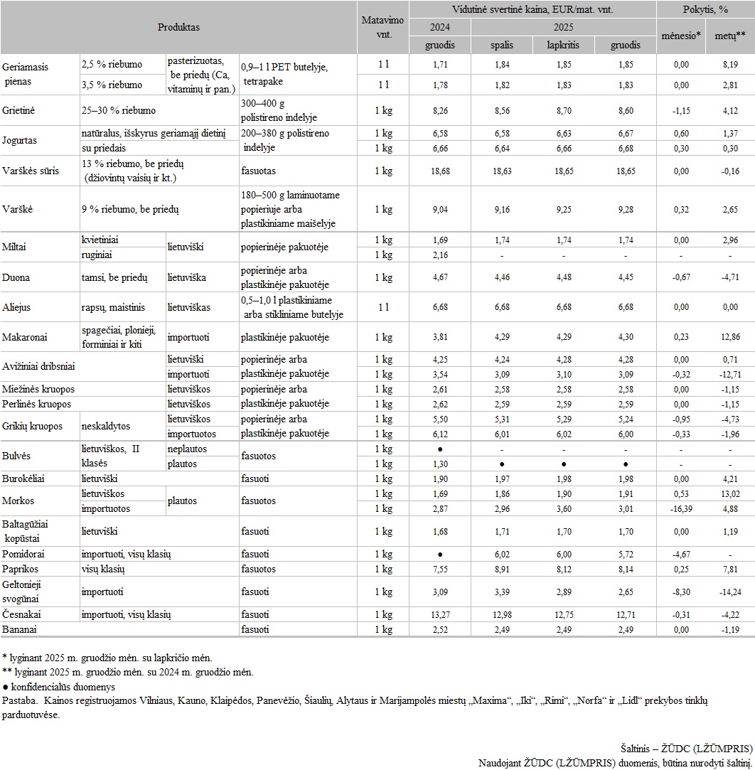 Mažmeninės kainos kaimo vietovių parduotuvėse