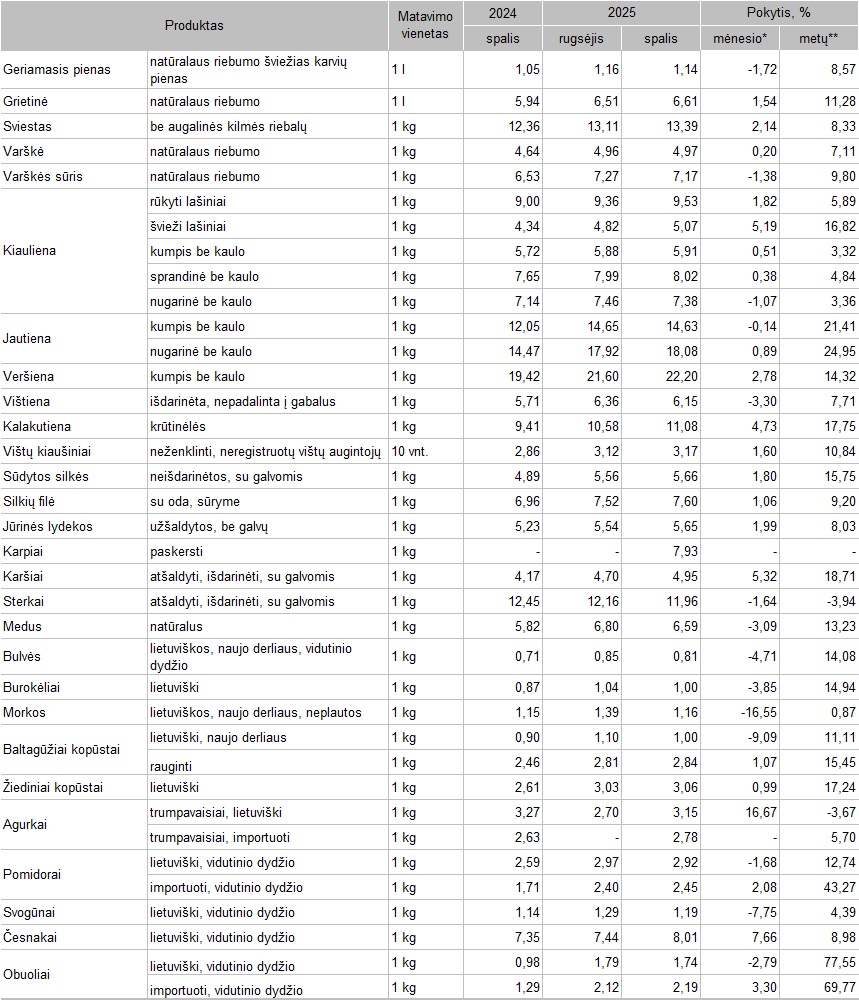 ** lyginant 2025 m. spalio mėn. su 2024 m. spalio mėn.