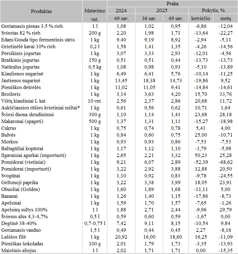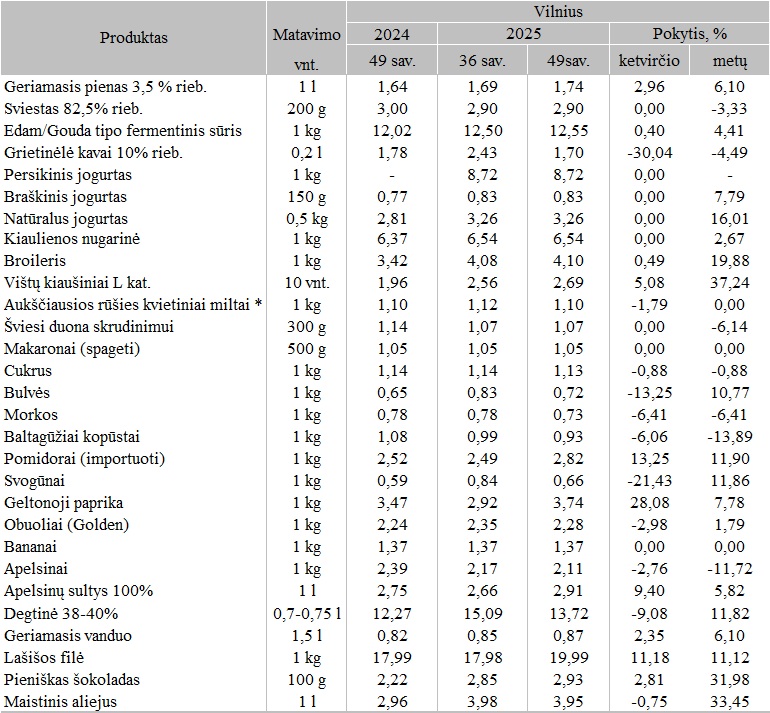Mažmeninės maisto produktų kainos kai kuriose ES šalių sostinėse 2025 m. 49 sav. (2025-12-01 – 2025-12-07)