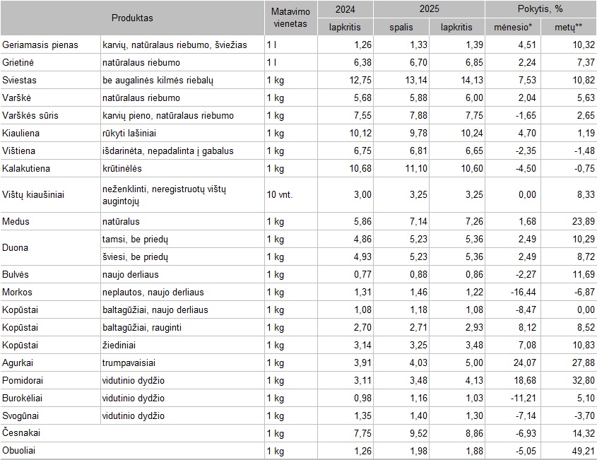 * lyginant 2025 m. lapkričio mėn. su spalio mėn.