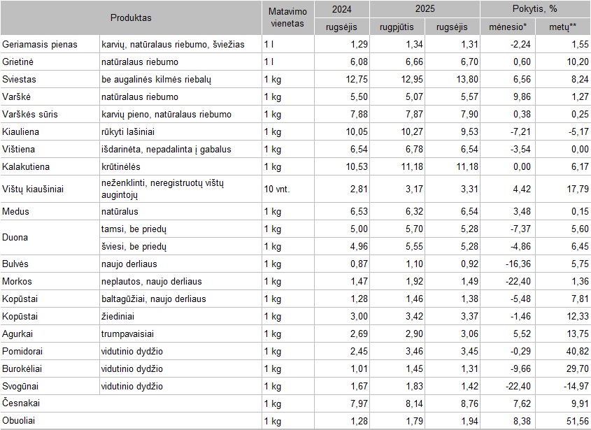 * lyginant 2025 m. rugsėjo mėn. su rugpjūčio mėn.