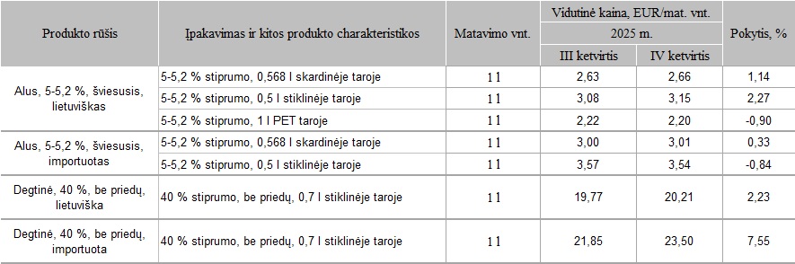 * kainos registruojamos Vilniaus, Kauno, Klaipėdos, Panevėžio, Šiaulių, Alytaus ir Marijampolės miestų UAB „Lidl Lietuva“, UAB „Maxima LT“, UAB „Norfos mažmena“, UAB „IKI Lietuva“ ir UAB „Rimi Lietuva“ prekybos tinklų parduotuvėse, kiekvieno ketvirčio antrojo mėnesio paskutiniąją savaitę.