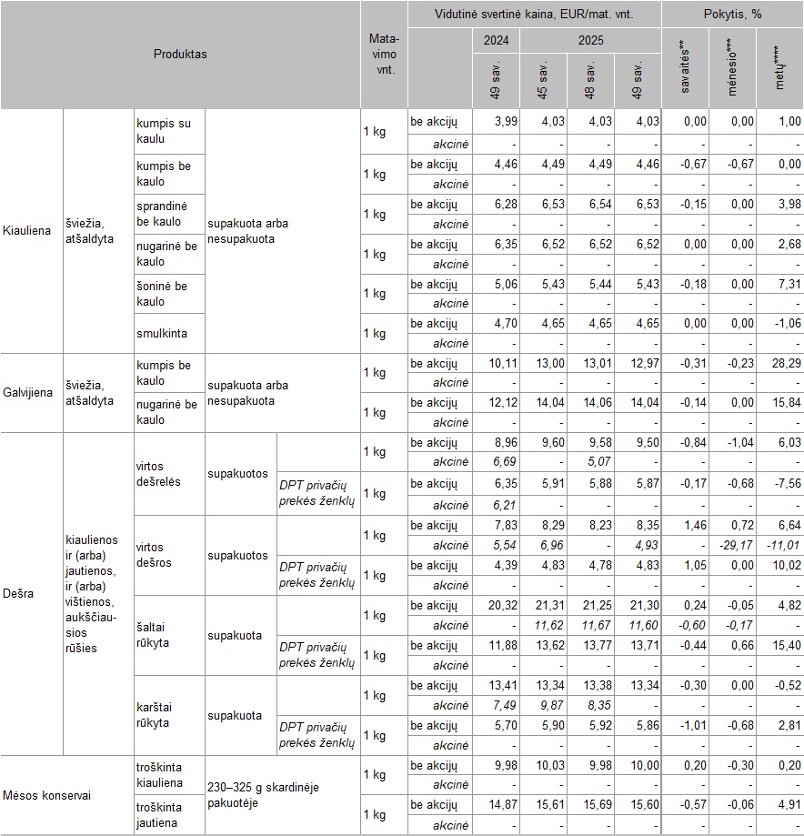 * kainos registruojamos Vilniaus, Kauno, Šiaulių, Panevėžio ir Alytaus miestų UAB „Lidl Lietuva“, UAB „Maxima LT“, UAB „Norfos mažmena“, UAB „IKI Lietuva“ ir UAB „Rimi Lietuva“ prekybos tinklų parduotuvėse