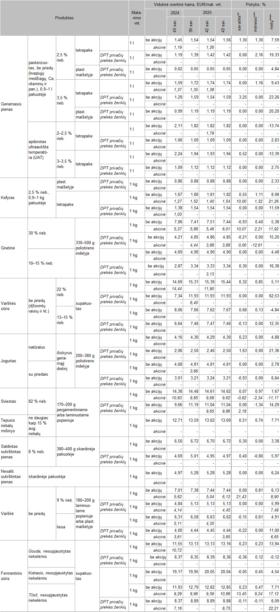 **** lyginant 2025 m. 43 savaitę su 2024 m. 43 savaite